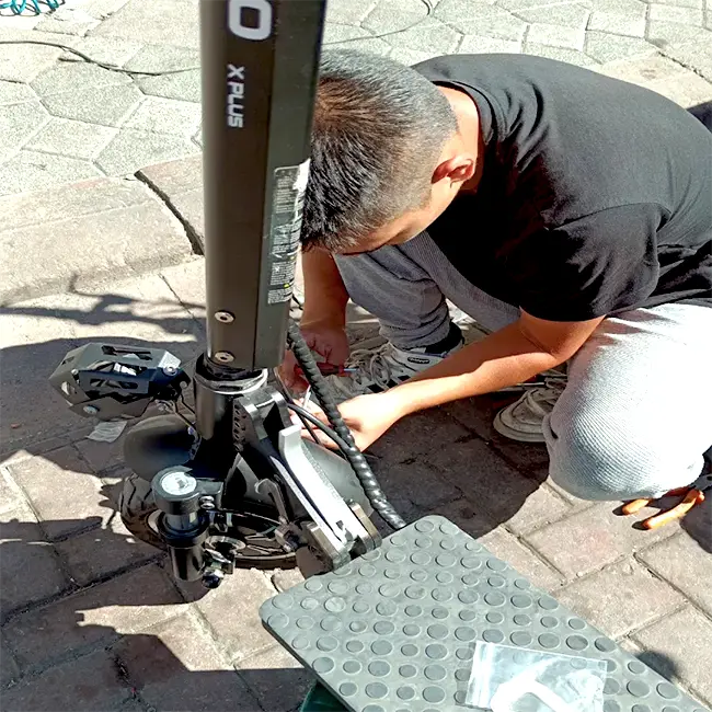 Lastik Patlamaları ve Değişimi: Xiaomi ve Ninebot gibi markalarda sık görülen lastik sorunlarını yedek iç lastik veya dış lastik değişimiyle çözüyoruz. Müsaitlik olan günlerde yarım saatte süreci tamamlayabiliyoruz. Lastik değişimi özellikle elektrikli scooterlarda çok önemli ve dikkatle yapılması gereken işlemlerdir. Şayet yanlış bir işlem motor kısmına zarar verebilir ve maliyet artabilir.